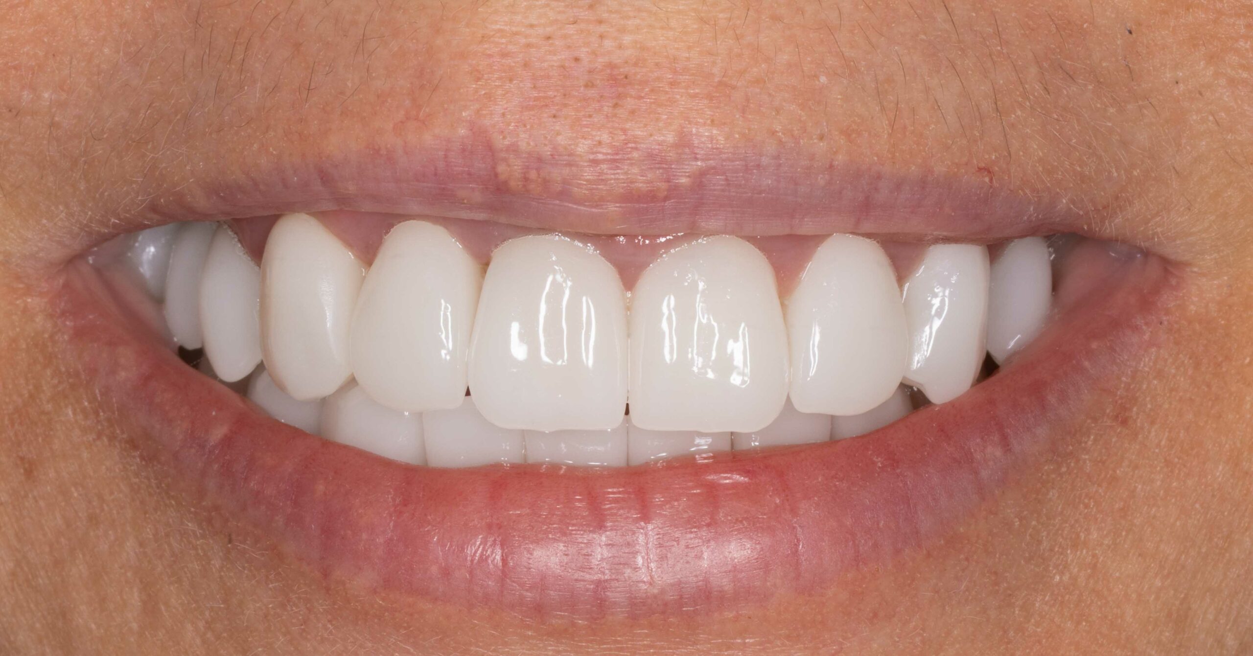 Pacjentka zgłosiła się w celu poprawy estetyki uśmiechu. W celu zapewnienia trwałości oraz stabilności odbudów zębów przednich konieczna było odtworzenie stref podparcia czyli zębów bocznych. Zęby boczne zostały uzupełnione oraz odbudowane z wykorzystaniem implantów, zęby przednie zostały osłonięte licówkami. leczenie zaplanował oraz przeprowadził lek. dent. Kamil Kikowicz